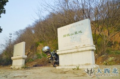 烟墩山位于镇江新区韩桥路东边,紧靠新区道达尔液化气站,路边竖着一块江苏省文物保护单位“烟墩山墓地”的大理石碑。扬子晚报记者在山脚下看到,被挖土机挖出的一条通道约有4米宽,蜿蜒通向山上,许多绿树被毁,泥土就堆放在山脚下。由于在山脚下看不到山上的情景,于是记者沿着通道往上爬,转过一道弯之后,就见一条笔直的大路直通“古墓”,在半山腰的位置还建了一条水泥台阶路。记者数了一下,共有19级,直通到山顶的位置。这个山包呈“馒头”状,现在这个“馒头”已经被人从中间挖成“L”形,一座新建的墓就建在“古墓”的中间,看上去剩下的半个“古墓”成了这个新主人的“靠背”,新建的墓呈长方形,还没来得及立墓碑。在被挖的“古墓”处,记者看到许多青砖瓦砾暴露在外。