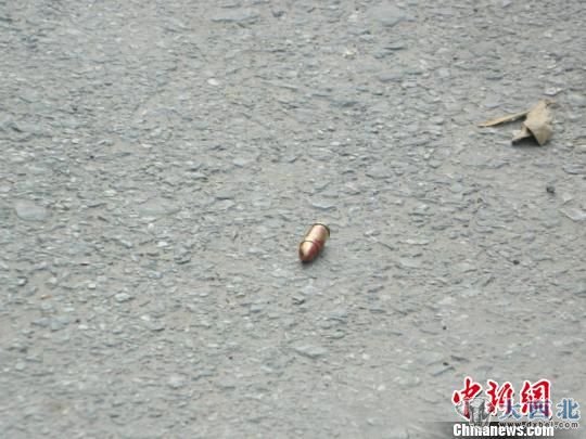 现场遗留一颗带血的子弹壳。 陈剑岷 摄
