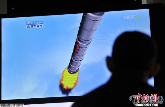 2012年4月13日上午11时许,朝鲜官方宣布卫星未能进入预定轨道,发射失败。朝鲜“银河3号”火箭于北京时间4月13日6时38分搭载“光明星3号”地球观测卫星,从朝鲜平安北道铁山郡西海卫星发射场发射升空。图为韩国首尔民众通过电视关注朝鲜卫星发射情况。
