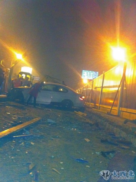 然而,宝马车撞击工地围栏而形成的碎片,散落在二环路东二段外侧,造成该路段由北向南方向出现大约20分钟的车辆排行。