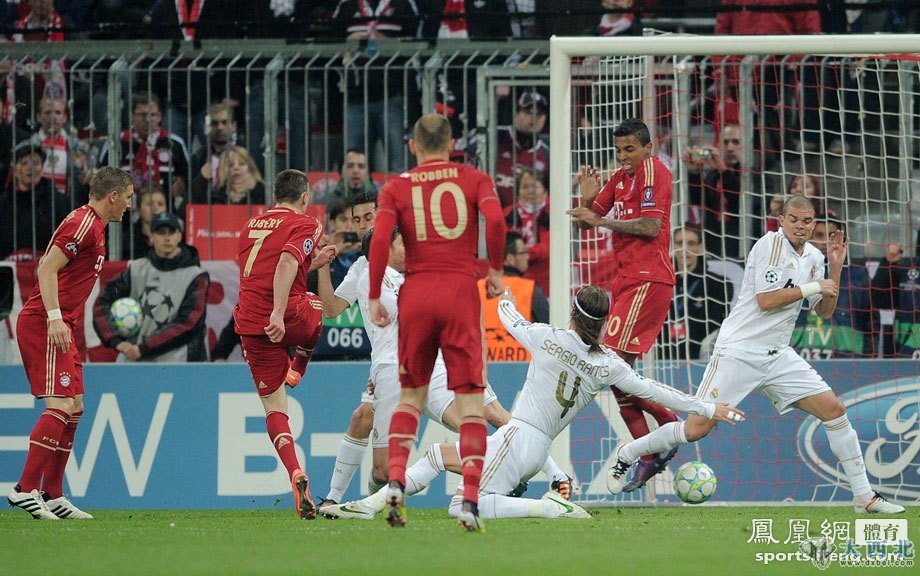 北京时间4月18日凌晨,2011-12赛季欧洲足球冠军联赛半决赛拜仁与皇帝首回合的比赛在安联球场展开角逐。上半场第17分钟,里贝里利用角球机会打进一球,下半场第53分钟,厄齐尔在第53分钟接C罗助攻进球,将比分扳平。不过在比赛进行到89分钟时,拜仁由戈麦斯打进绝杀一球,最终在主场以2-1击败皇马,在两回合的比赛中占得先机。一周后,双方将在伯纳乌展开次回合的较量。