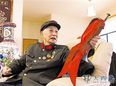 图4 90岁的老红军王扶之在战争年代是一位英勇善战的骁将。他自豪地告诉记者,红军时期,他参加打了3个比较有名的仗:劳山、直罗镇、山城堡。他从当营长至师长,指挥部队共打死、打伤和俘虏国内外敌人20000多人。抗美援朝二次战役,他任志愿军39军115师师长,设在山洞中的指挥所被美军飞机炸塌,志司宣布他阵亡,并为他做好了棺材。3天后,官兵发现从塌洞中飞出苍蝇,猜测可能还有活人,便继续挖掘,终于把他救了出来。王扶之把为他准备的棺材给了在洞中采访牺牲的人民日报记者。