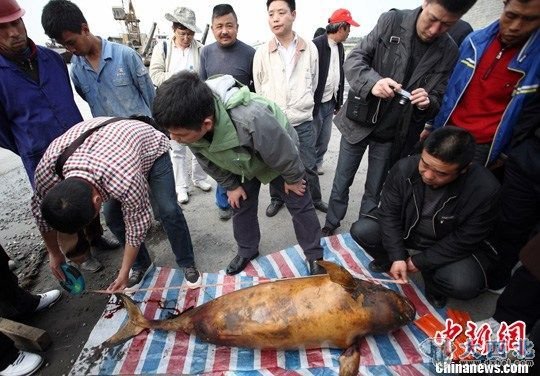 中科院水生所专家前日上午对从湖南岳阳运来的两头江豚尸体进行了解剖,场景令人唏嘘。