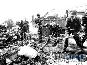 4月21日,武警兰州市支队抽调200名武警战士和4辆清运车,到秀川街道大滩社区帮居民清理住宅楼之间狭小的空地上的垃圾。经过2个多小时的努力,堆积在此的垃圾被彻底清除。