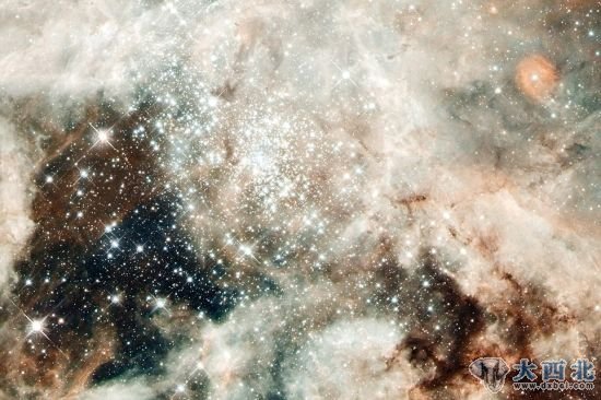 北京时间4月23日消息,据国外媒体报道,“哈勃”太空望远镜近日捕捉到一个“星爆”,它由从“剑鱼座30”繁衍出来的数百万个年轻恒星组成。该星座是“蜘蛛”星云中心的一个恒星聚合体。