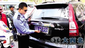 5月1日下午,东岗交警五中队的民警在东部市场门口治理停车秩序的时候,发现了一辆变造涂改号牌的车辆。这辆停靠在路边的原本为甘N·68998的本田轿车车牌却被车主粘贴篡改为甘N·6X998。对此,交警当场处以2000元罚款,并将车辆进行暂扣。对于故意遮挡、更改车牌的情况,东岗交警五中队的民警表示,该车辆伪造、变造号牌的行为已严重违反了《道路交通安全法》,而且伪造、变造号牌后,躲避电子警察监控,一旦发生意外情况或肇事逃逸等,将很难进行取证。