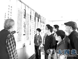 记者从龚家湾街道举办的第四届廉政文化书画展巡展活动现场发现,参展的165幅书画作品中有80%以上是周边大学的学生作品,大学生俨然成为社区书画展的“主角”。据兰州工专李玉海教授介绍,参赛者中很多都是兰州理工大学技术工程学院和兰州工业高等专科学校、兰州九中的书画爱好者,其中有很多都是他的得意弟子。值得一提的是最小的参赛者李汶阳今年才12岁,在兰州九中上初一,不仅擅长楷书,更绝的是竟然会写西夏文书法。