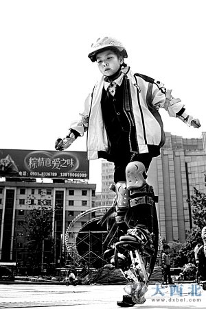 他自己是一个彻头彻尾的运动发烧友,什么独轮车、轮滑、游泳、滑冰他都不在话下,这其中独轮车是他的看家本领。