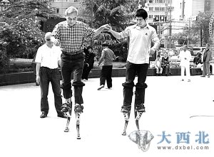 市民玩高跷挑战自我