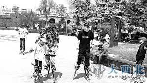 在公园小广场上,人们被一位踩着高跷蹦蹦跳跳的小姑娘所吸引。不一会儿,又一位老人骑着独轮车转起了圆圈……这一幕幕精彩的极限运动表演在这之前似乎只能从电视上看到,然而,这天,却是让市民们大开眼界,不觉纷纷围了上去都想一试刺激。