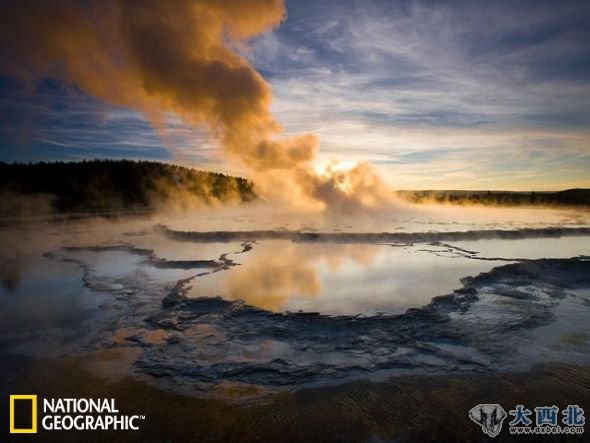 黄石公园的大间歇泉,其热量来自地下的火山岩浆加热