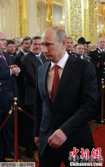 5月7日,俄罗斯举行总统就职典礼,这是弗拉基米尔·普京会三度入主克里姆林宫。图为普京在就职典礼现场。
