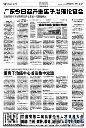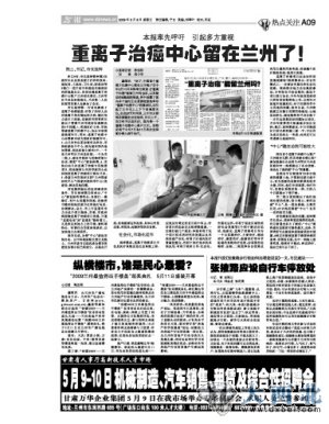 2009年3月11日上午,数万份带着油墨清香的《科技鑫报》,来到了兰州万千读者手中。而在A06版刊发的《“重离子治癌”能留兰州吗?》的报道,立即引起了街头巷尾的热议。
