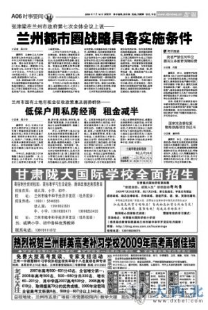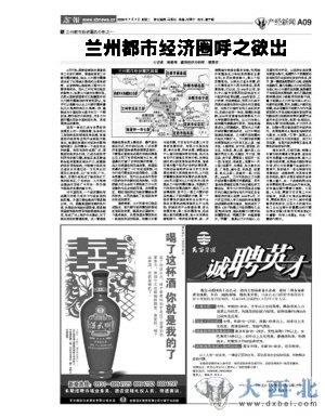 2009年7月7日,由时任本报总编辑的杨重琦先生主笔的“兰州都市经济圈分析之一”——《兰州都市经济圈呼之欲出》见诸报端,并配兰州都市经济圈范围图,图文并茂地分析了兰州都市经济圈建设的背景、意义、影响力等。
