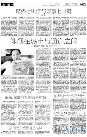 毫无疑问,东部商圈是兰州商界有史以来规模最大和最具活力的商圈。然而由于狭长地带的特性,兰州商圈具有游移及桥头经济的特征。而七里河,由于其特殊的地理位置,更加凸显在兰州商圈中的特殊性。这一次,鑫报将关注的目光投向七里河,于是,关于解读七里河的“城”与“市”的策划报道应运而生。