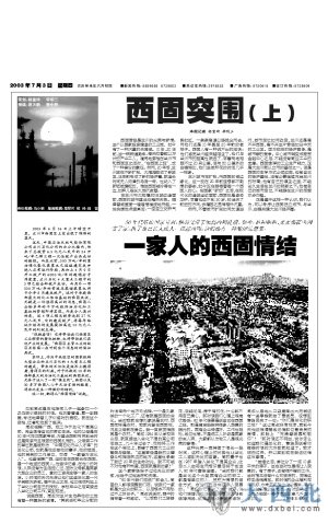 2003年7月3日,鑫报大型策划报道“西固突围 ”重磅出街。鑫报提出:在兰州市大规模的旧城改造面前,西固的城市建设也黯然失色。依然是10年甚至20年前的老样子。西固人有一种说不出的滋味:他们感觉兰州越来越陌生了,他们与兰州市的距离也疏远了,尽管两地相距不过20来公里,但与80公里外的白银相比,他们进城所花的时间几乎一样多。