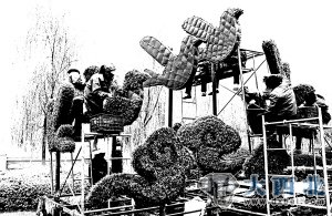 来到桥下,城关区绿化所的负责人、雁滩绿化站的负责人正在与工人们一起奋战。在盆花栽培运送区,工人们洗着花盆、培着肥料、栽着鲜花,忙碌而又热闹。而在绿雕部件加工区,钳工、焊工、搬运工的身影,与轰鸣的器械声、穿梭的车辆声演奏出一曲为绿化而忙碌的和谐交响曲。