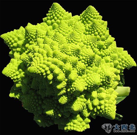 2.罗马花椰菜:罗马花椰菜,是花椰菜的近亲,它可能是最规则最漂亮的蔬菜。罗马花椰菜是一种可食用的花椰菜,16世纪发现于意大利。这种花椰菜长相特别,花球表面由许多螺旋形的小花所组成,小花以花球中心为对称轴成对排列。