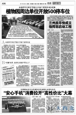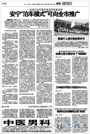5月4日,根据市民建议,本报又提出《安宁泊车模式可向全市推广》。甘肃省社科院社会学研究所副研究员李有发说:“实际上,鑫报的这些报道,也可以为政府整合社会资源的方式提供参考。”