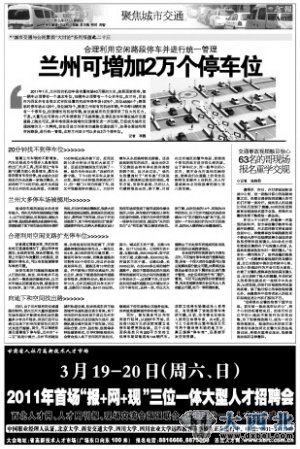 2011年4月,本报记者从一场花展的停车难问题,想到这个城市的停车难问题,算出在科学管理、合理规划利用的前提下,开辟小街巷两侧的临时停车点,在不影响正常通行的情况下,兰州能增加2万个停车位。在本报的不断推动下,2012年,城关区制定《小街巷交通管理细则》,在全区30条小街巷推行“单边停放、单向通行”模式,并确定曹家巷、贡元巷等作为试点小街巷。