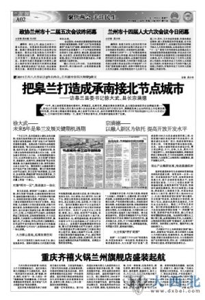 2011年1月7日,稍显疲倦的跑两会的记者吴少华,在会议休息的间隙,随同行媒体记者采访参加兰州市第十四届人民代表大会第六次会议的皋兰代表团。皋兰县委书记徐大武,县长宗满德在回答记者提出的皋兰如何抓住兰州拓展发展空间的机遇,夯实皋兰跨越发展的基础时,书记和县长不约而同的结合鑫报1月7日刊发的《2011兰州八大关切之向北向北:兰州城市空间大转移》向记者畅谈。