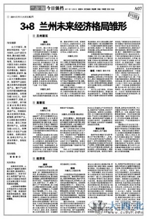 最后编辑部根据大家讨论的结果,结合政府报告中突出的“三区”建设、多元支柱产业培训、城市形象提升、城乡统筹发展、保障和改善民生、区域经济合作、提高财税管理水平、行政效能建设等内容里,按照先前社长提出的“打破常规玩热点”的要求,挑选出具有创新性、特色化的8个最为引人瞩目的问题,并初拟以秦王川新区5片区建设、拓展城市空间、促进多元支柱产业发展、构建“3+8”板块经济体系、投融资体制改革、农村土地流转、城市信息化建设、农超对接为题,画出了“2011兰州八大关切系列的”的基本架构。