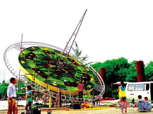昨日,开封市新潮菊花园艺造型公司的职工正在兰州市市民广场对时光花坛进行最后的装饰。据了解,时光花坛是市民广场系列景观花坛重点之一,造型新颖独特。由开封市新潮菊花园艺造型有限公司设计、施工。