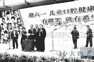 鑫报讯 昨日,由卫生部疾病预防控制局、中国健康教育中心(卫生部新闻宣传中心)、省卫生厅、中华口腔医学会共同主办的“有微笑 就有希望——2012年迎六一儿童口腔健康甘肃行”活动,在城关区水车园小学隆重举行。全国人大常委、中国工程院院士、中华预防医学会会长、中华口腔医学会名誉会长王陇德,省政协副主席、省口腔医学会会长栗震亚,卫生部疾病预防控制局副局长孔灵芝,中国健康教育中心主任毛群安出席活动并致辞。来自全国各地从事口腔保健的工作者,城关区水车园小学师生、学生家长等共约2400余人参加了活动。
