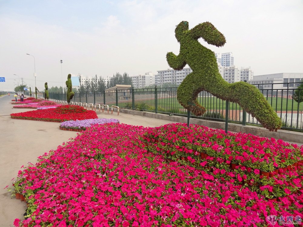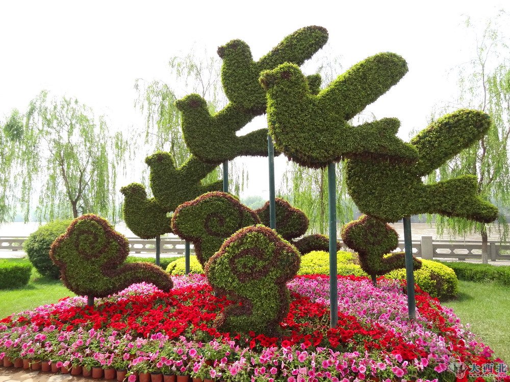 沿赛道行进,格式绿雕或像展翅翱翔的鹏鸟,或像正在腾飞的巨龙,或是各种可爱的卡通造型。 它把人们心中的绮丽梦想表现在雕塑上,设置于绿树红花的环绕中,让人在赏心悦目叹为观止的同时,不得不佩服自然界的神奇和人类智慧的高超。这些造型美观、形态各异的绿雕作品,形成了滨河路上一道独特靓丽的风景线,彰显着“花、绿、水”的魅力。