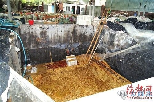 在这个数十平方米的大池子里,黑心商家用工业柠檬酸泡出了35吨金针菇