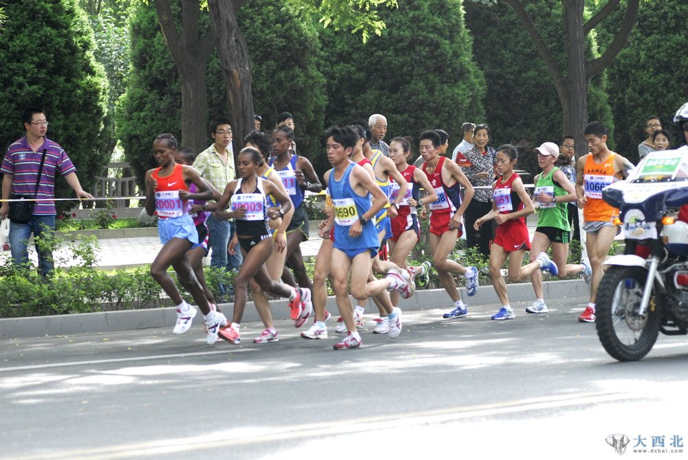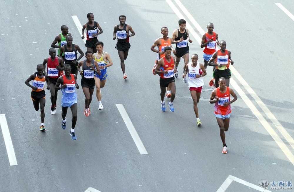 在开跑后,国内外的专业选手们一涌而出。特别是来自埃塞俄比亚和肯尼亚的选手更是组成第一方队,虽然其中有国内选手紧紧跟随在最后5公里左右,来自埃塞俄比亚的两名选手巴祖·沃库和所罗门·西格率先从第一集团冲出。当所有的目光都将夺冠的目标集中在本次马拉松报名成绩最好的巴祖·沃库身上时,在最后的冲刺阶段,紧跟其后的所罗门·西格却突然发力,在最后50米反超巴祖·沃库,最终以2小时15分17秒的成绩夺得男子组冠军。至此,在男子全程的比赛前十名中,除了来自青海的尹顺金获得第七名之外,其余均为国外选手。