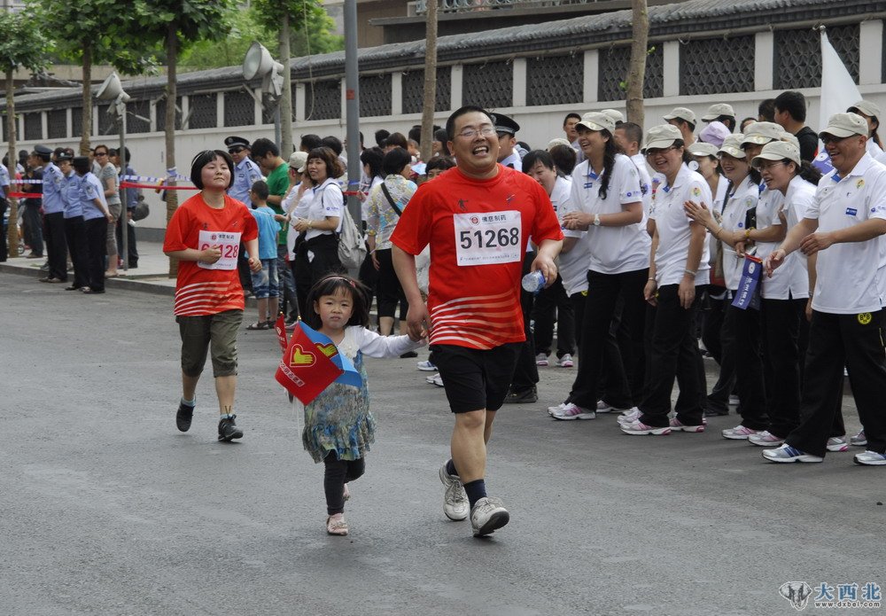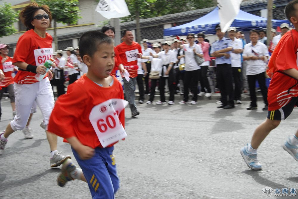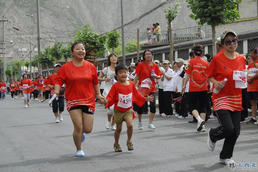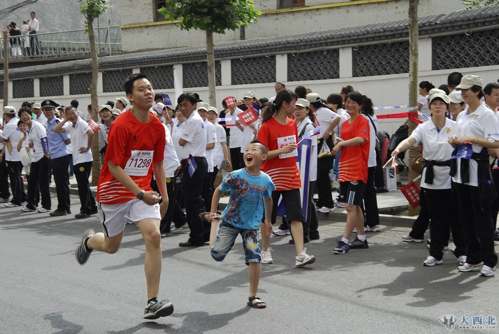 昨日上午8时,随着一声清脆的发令枪响,2012兰州国际马拉松赛暨全国马拉松积分赛正式开跑。随着肤色各异的专业选手率先冲出起跑线后,紧随其后的是身穿统一橘红色服装的庞大的市民队伍。他们中有七八十岁的老者,还有正在上学的五六岁的小孩,在欢快的奔跑中,他们喊着、笑着向终点进发,享受着跑步的乐趣。由于有近三万市民参与到本次活动中,使得他们川流不息地从起跑线涌出,庞大的人流在兰州的道路上汇聚成了一条红色的河流。直到20分钟后,当率先冲出的专业选手们已经跑出7公里之后,最后的人流才从起点出发。