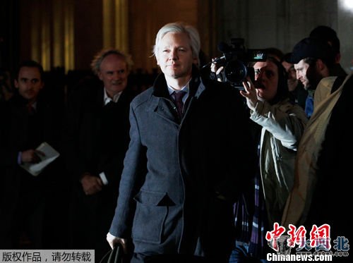2月2日,在英国首都伦敦,维基揭秘创始人阿桑奇离开英国最高法院。