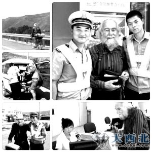 鑫报讯 昨日,一位法国老人骑着自行车上了高速路,甘肃省公安厅交警总队高速公路第三支队会师大队民警发现后及时劝老人离开了高速路。在得知其有困难时,还给予了热情的帮助,此举得到了法国老人以及网友的支持与赞美。