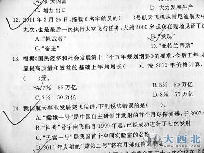 “‘明法通则’那题确实有点低级错误,我以为明朝就有通则了呢。”小姚说,“还有‘神舟号’宇宙飞船那题,截至考试当天,神舟号宇宙飞船一共发射了9次,就算不算考试那天,也发射了8次吧。这道单选题有两个答案啊!”