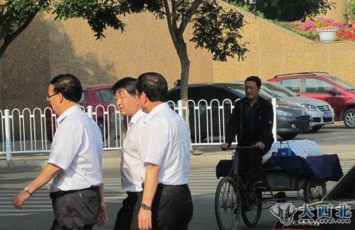 六月二十日早八时许,记者途经通渭路时,看到兰州市市长袁占亭一行五人沿南滨河通渭路段由西向东走来,在通渭路口等待红绿灯后,由南向北穿过班马线径直走进市委大院。记者快速用镜头记录下了这一幕。记者 杨维勇