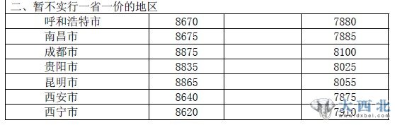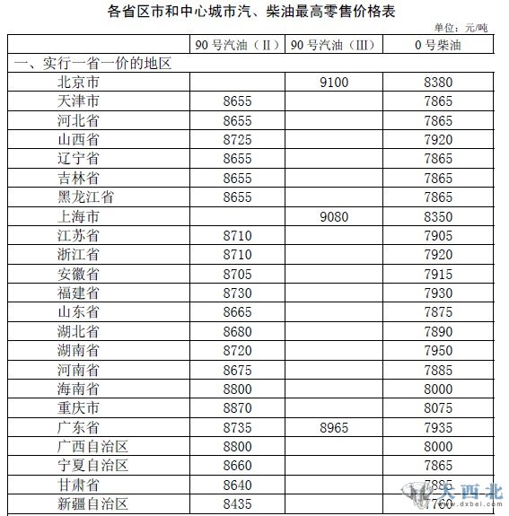 三、各地汽、柴油最高零售价格等额降低。调整后各省(区、市)和中心城市汽、柴油最高零售价格水平见附表二。各省(区、市)价格主管部门按规定的品质比率调整汽、柴油非标准品最高零售价格。