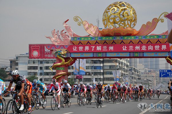 第十一届环青海湖国际公路自行车赛兰州赛段比赛。 贾笑云 摄