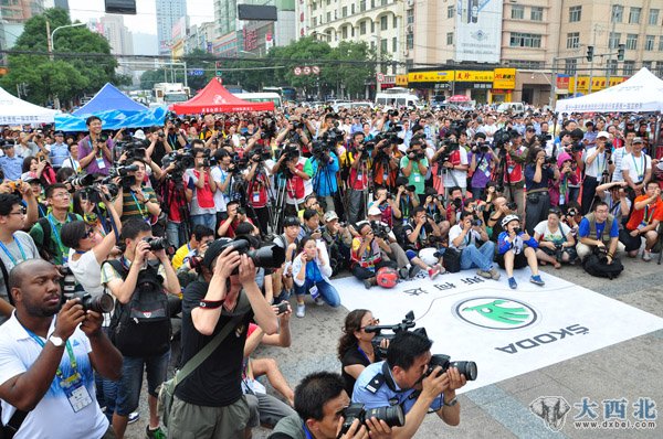 第十一届环青海湖国际公路自行车赛兰州赛段记者群。 贾笑云 摄
