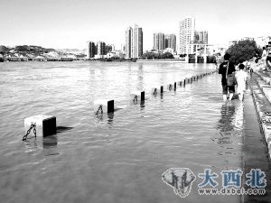 而像银滩湿地公园的步行栈道,也在河水上涨中受到影响。