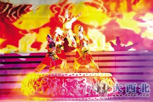 鑫报讯 昨晚8时,一场荟萃全国鼓舞经典的《鼓舞中国》大型文艺晚会在兰州水车博览园华彩登场,同时也拉开了为期十天的“兰州黄河文化旅游节”的序幕。开幕式由《序·鼓舞中国》、《远古回声》、《山河交响》、《九州凤鸣》、《尾声·天地人和》5个精彩篇章组成,整场开幕演出以中华“鼓”和“舞”为主要艺术表现手法,数字灯光技术和先进的视频技术使得整台晚会美轮美奂、浑然天成。