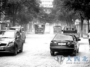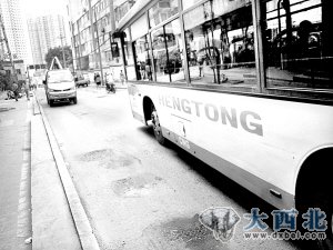 大片破损的路面,大坑套小坑,小坑连大坑,其中严重的地方,石块都暴露在外,还有大量洒落在地上的碎石子,这些都给交通造成了影响。由于道路并不宽敞,再加上车辆较多,因而很多汽车在路过此处时无法绕行,只好硬着头皮碾上去,无奈忍受颠簸之苦。