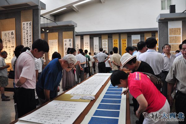 来宾参观甘谷书画展。 贾笑云 摄