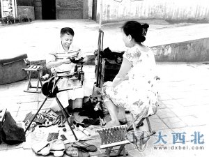 来到红星巷华联超市对面那热闹而又狭窄的小巷口,杨克仓正低着头默默地在鞋跟上敲打着铁钉。一张躺椅、一架手摇补鞋机、一盒修鞋的工具、各式各样的鞋垫鞋跟、几个小凳子、一把太阳伞,这就是修鞋匠杨克仓那小小的修鞋摊。而正是这个小小的修鞋摊,让勤劳、为人诚实的杨克仓在20年的时间里,供出了一对大学生儿女。