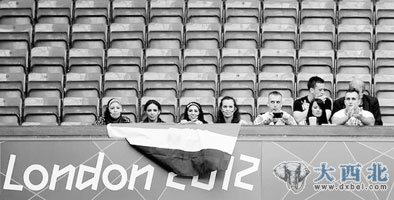 伦敦奥运会号称“历史上门票销售成绩最好”的奥运会,但自奥运开幕以来,不少场馆的观众席却空空荡荡。很多项目在奥组委官网显示门票已经“售完”,比赛时却需要找士兵来填充空白的座位。图为几名观众在观看比赛。图片来源:中国网