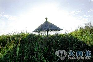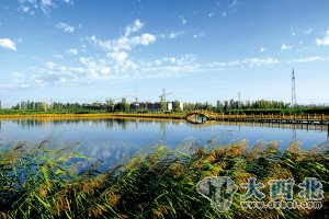 芦苇、碧水、蓝天、白云构成一幅美丽的画卷