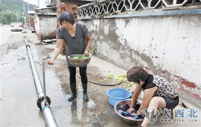 昨日,房山区周口店镇的村民在用刚通的水洗菜洗衣服。新京报记者孙纯霞摄