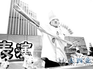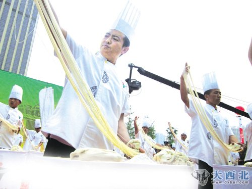 鑫报讯 或许您曾经在吃牛肉拉面时看过一个人拉面表演的技艺,但这个百人拉面表演的震撼场面相信您也是第一次见。 您现在看到这个场面,可能以为是在拍电影,不,这是昨日2012中国兰州牛肉拉面节开幕式的现场。主持人的尖叫,现场观众的掌声,让来自海内外的宾客着实震撼一把。