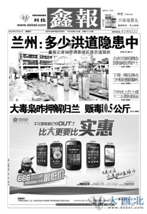 ■5月24日,鑫报头版头题刊发《兰州:多少洪道隐患中》专题报道,记者通过对兰州市区的排洪道进行抽样调查发现,其现状并不乐观:许多排洪道内淤泥深积、垃圾堆积;有的堤坝老旧,维护乏力;有的排洪道上方,建成房屋;更让人费解的是,许多排洪道内,成为建筑场地和体育健身场地……■观及此,言及此,兰州排洪道的压力、隐患及排洪能力,已不言自明。