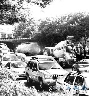 “虽然这个双洞子的限高是4.5米,但涵洞的实际高度只有4.25米。因为路面改造后,桥洞里的路面增高了,许多不知情的大货车司机驾车行驶到洞内就会被卡住。白天情况还好点,我们一般发现超过4.3米左右的车后都会劝司机右转拐进建西东路走。可有时到了夜里,一些不掌握情况的大货车司机就会硬挤,往往会被卡在里面,造成交通堵塞。”交警郭鑫说。